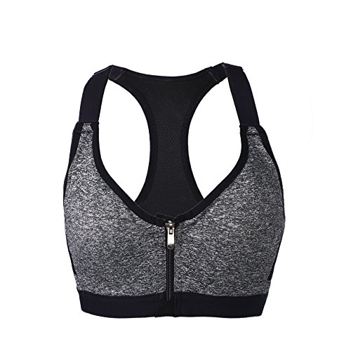 -. Feature : The full coverage wirefree sports bras are soft and supportive. Made from mostly polyester with a small amount of spandex, so it's stretchy and allows for full movement while wear it. Fabric wicks away moisture to keep your body cool and dry. Special designed sports bra idea for exercising, weight training, or any sport. It's also a great lounging, yoga or sleep bra too. / High impact supportive padded sports bra features front zipper closure and adjustbale back cross comfort shoulder straps. The zip closure is secure-locked. The straps stay securely where they ought to because this is a racerback bra. Power mesh decorated under the arm of this wirefree padded support bra helps your skin to breath more and control temperture freely. / The sport training bra provides full coverage and easy to get on without a strle. The front zip running bra is perfect for support and convenience. You can wear it all day and spend time outdoors in oppressize heat and humidity and still be comfortable. You can wewar this wirefree pushup bra to sleep at night for support, or during the day as a regular bra. / The shoulder straps are adjustable, nothing to interfere with the wide shoulder sraps. Popular crop top design with padded and push up bra for extra support. Designed to withstand medium to high impact workouts. Protect your breasts from harm. The back has an open area in the middle that keeps that area cool. Available in different sizes, suitable for different body sizes women and girls to wear. / Whether you're cycling, dancing, training, walking the dog,or running errands over weekend, these athletic workout bras are designed with high push up support, giving you the best comfort and support, so you can enjoy the freedom of movement. No matter which sport you prefer, the snug fit and special back of this racerback sports bra ensure it provides the support you need.