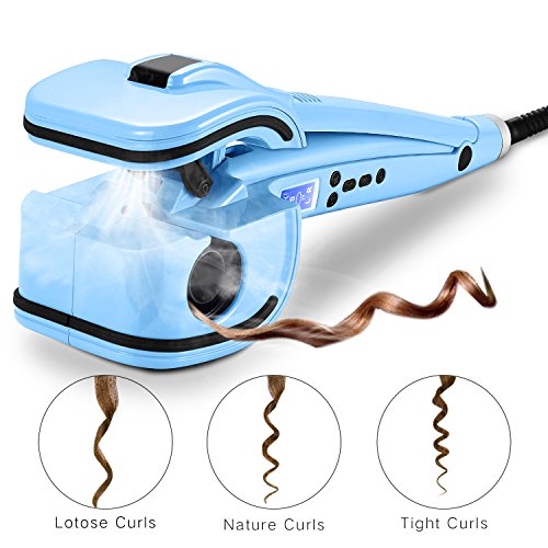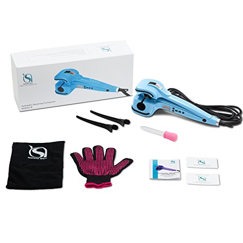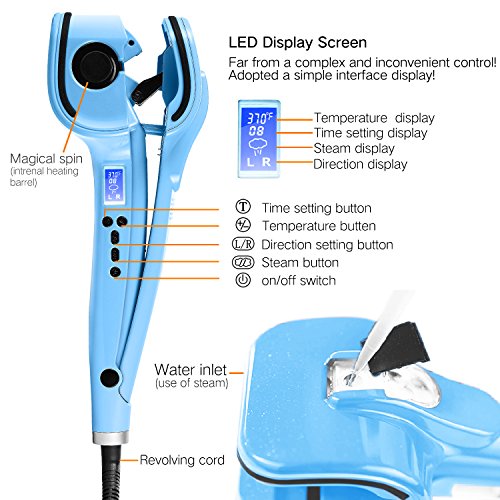Title : Natalie Styx Christmas Gift Blue Salon Automatic Steaming Curling Iron Ceramic LCD Display Curl Machine Spray Function Hair Curler with Protective Glove,Travel Size Pouch and 2 Clips Gift for friends