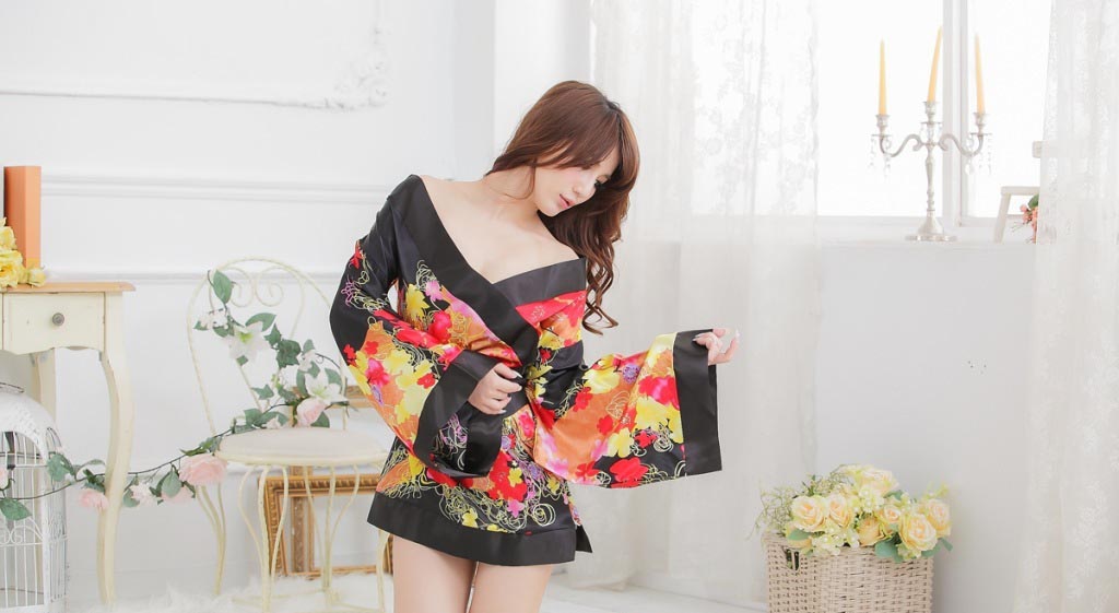 着物風 セクシー コスプレ 衣装 浴衣 ドレス ブラ Tバック セット ブラックctr-b75【1~2日発送】