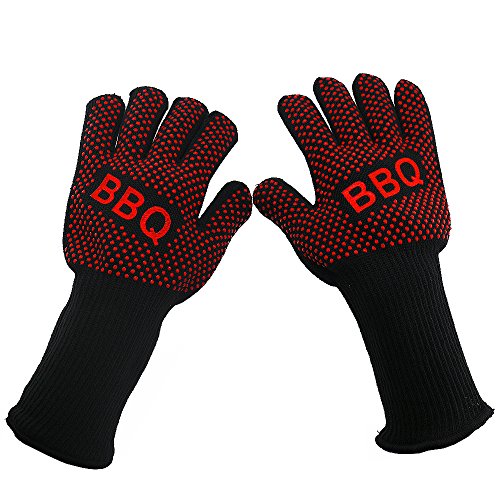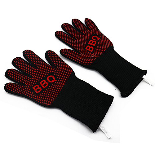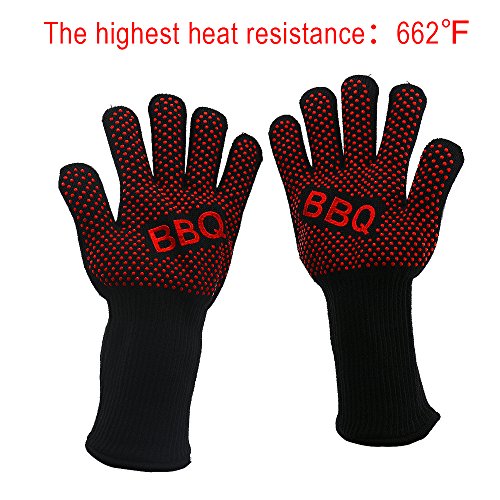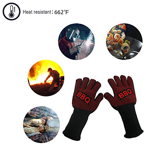 - PREMIUM MATERIALS:Double-layer design with thick cotton and fire-proof Kevlar fiber,extreme heat resistance,non-slip red edible silicone coatings,strengthen heat resistance ability,cut resistance