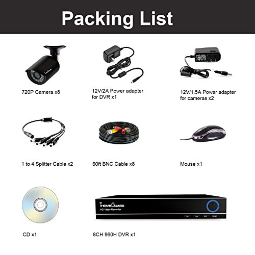 -. Feature : IHOMEGUARD 8 Channel 960H HDMI DVR with 8 1280TVL 720P High Resolution Cameras, full 960H High Quality Video Recording, Easy to install, build a home video security system quickly and easily setup by anyone. To record images/videos and storage in Hard Drive, the system continuously recording 24/7. Playback feature with customizable searching area. / Remote View Anywhere Anytime- Free APP XMEYE on Apple Store & Google Play. Simply Scan QR Code/Input ID Manually, iPhone/iPad, Android Device Remote Access to View Live Video Even You're not There, Play Back Supported. / Any movement detected will be recorded and notification will be sent immediately to your smart phone. Detection area can be customized directly from your DVR to minimize false alarms. (Needs an internal hard disk, it can't record or playback without hard drive) / 8 High Resolution 1280 TVL IP66 Metal Weatherproof Cameras for Excellent Video Quality and Clarity. / All systems CE & FCC & UL certified with qualified power supplies.Guaranteed for 1 Year & Free life time Tech Support.
