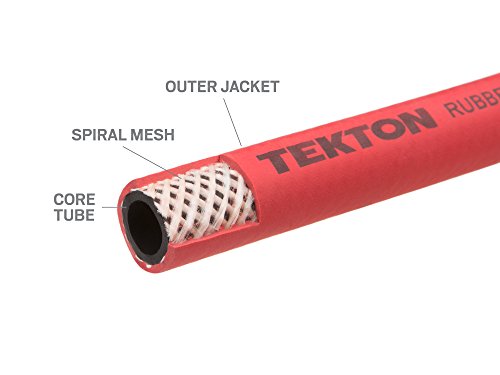TEKTON 46347 3/8-Inch I.D. by 3-Foot 250 PSI Rubber Whip Air Hose with 1/4-Inch MPT Swivel End
