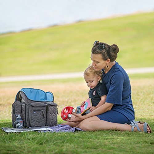 ? Feel the quality - Waterproof twill nylon, Stable, well-padded for protection ? Carry virtually anything with numerous pockets - Bag size measures 15x13x6 inches ? Use it for any task you can throw at it - Ultra-large center compartment for diapers, toys, wipes, snacks or even a laptop or tablet ? You'll always be prepared when traveling - changing pad and thermal bottle bag included ? Worry no more about finding the right present - perfect gift for expecting and new parents