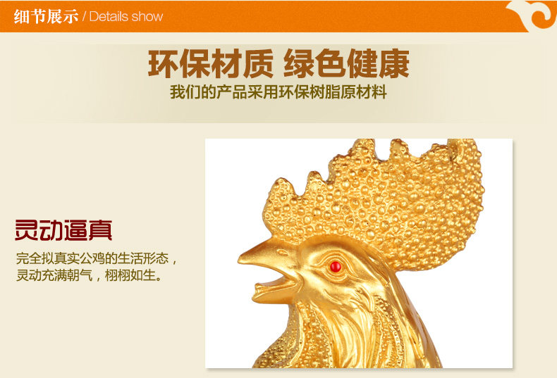 上善若水 鸡摆件 生肖公鸡金鸡招财风水家居工艺装饰品 2385