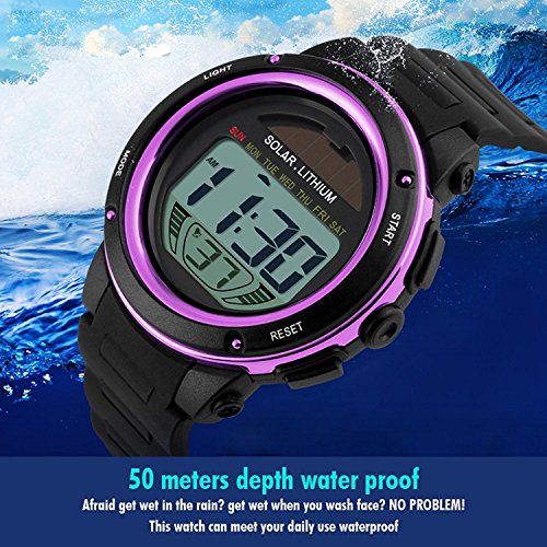 SOLAR POWER: The sport watch works with the sunlight/light power by solar panel, especially for outdoor activities. Without sunlight/light, it works with the internal battery