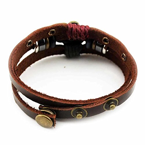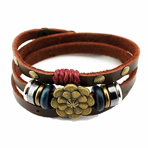 Multilayer Leather Personality Hematite Lucky Lotus Flower Snap Button Wrap Bracelet Size 17-19cm