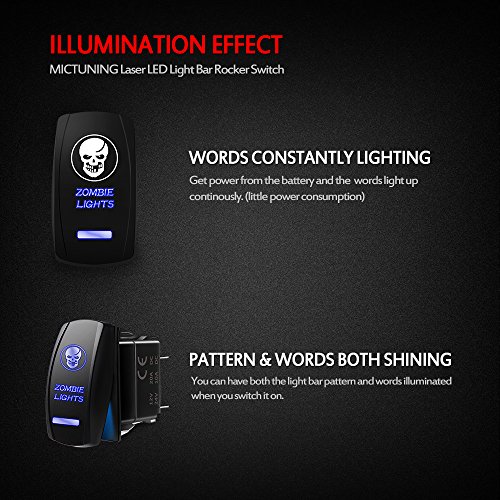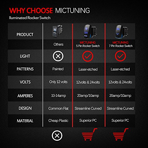 MICTUNING 5 Pin on-off Rocker Switch is SPST designed(Single pole single throw) switch, it come along with a set of jumper wires, simple to install, can easily turn on/off the lights