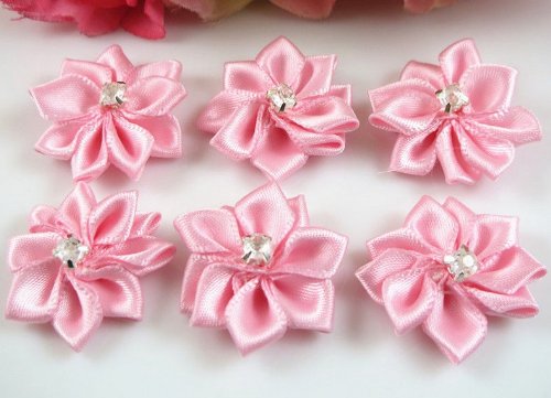 YAKA 60pc Satin the Ribbon Flowers with the Appliques Craft DIY Wedding to Pink