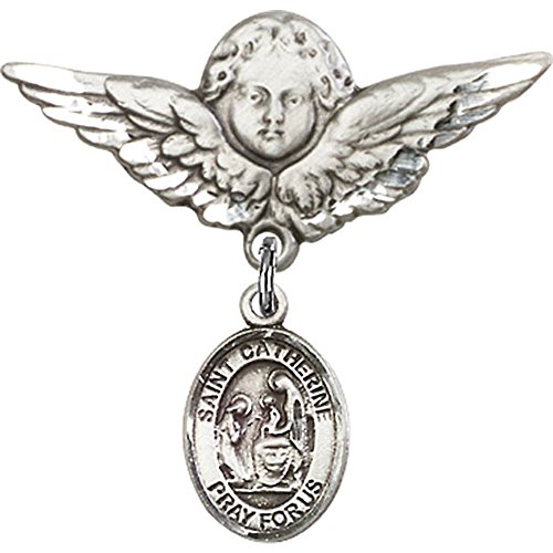 -. Title : Sterling Silver Baby Badge with St. Catherine of Siena Charm and Angel w/Wings Badge Pin 1 1/8 X 1 1/8 inches