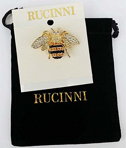 -. Feature : RUCINNI Brand Brooch / SWAROVSKI Crystals (clear, jonquil, topaz, jet) / 20K gold-plated, pin fastener on the back / Size: 1.8" x 1.3" approx. / A Black velvet pouch included