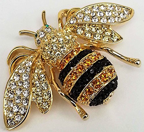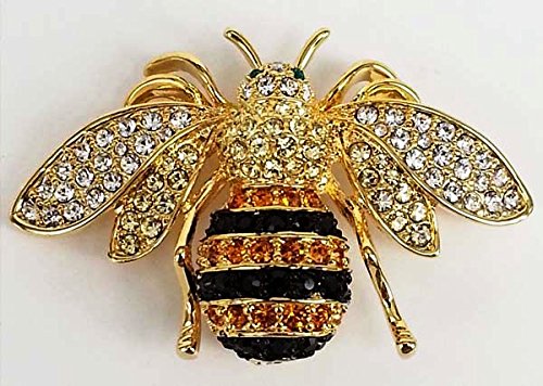 -. Title : Honey Bee Brooch with SWAROVSKI Crystals