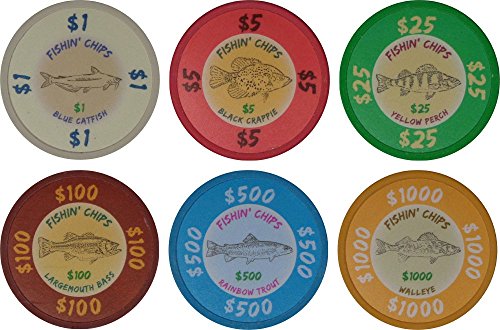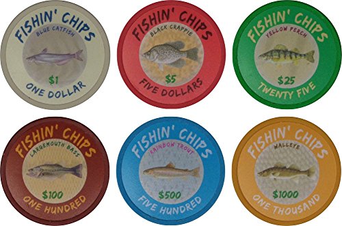 COMPLETELY CUSTOM & TOTALLY UNIQUE - The FISHIN' CHIPS ® FRESHWATER include:Blue Catfish, Black Crappie, Yellow Perch, Largemouth Bass, Rainbow Trout, and Walleye.