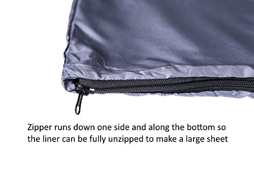 FULL LENGTH ZIPPER – The Vumos® Sleeping Bag Liner comes with a full zipper that runs fully down one side and across the bottom of the liner. This means it can be fully unzipped to make a large sheet.