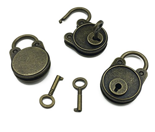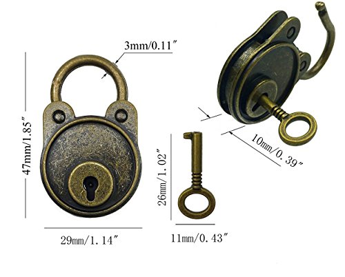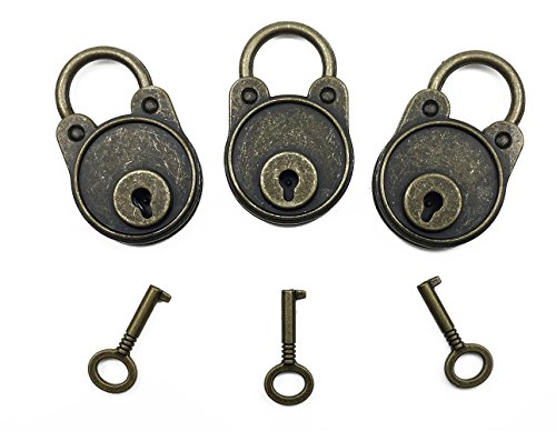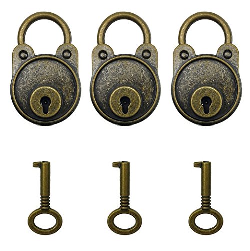 Hyamass 3pcs Vintage Antique Style Mini Archaize Padlocks Key Lock with Keys (Bronze)