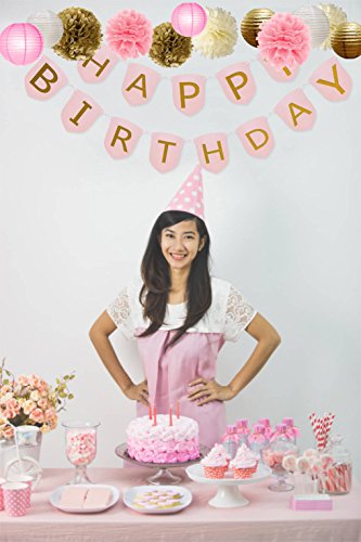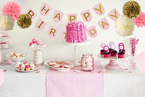 Paxcoo Pink and Gold Party Supplies with Happy Birthday Banner for Birthday Decorations