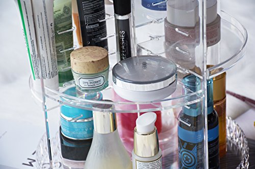Its 6-tier of Adjustable Trays allow you to adjust each tray height according to the height of your products by assembling the holder with scaled interlocks and position of the small shelves according to your storage needs. What’s more, there’s a spinning tray at the bottom which enables easy access to all of your makeup and products at 360°