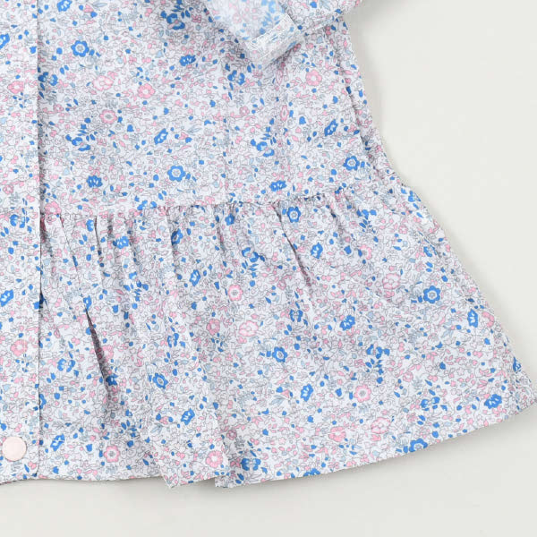 - 여성스러운 핑크색상의 레인코드로 여성스러운 꽃무늬가 잔잔하게 나염처리되어 있는 레인코트입니다.