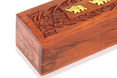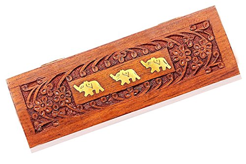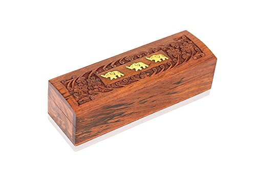 Womens Day Special Gift,Pencil Box Carving Inlay, With 3 Elephant Brass pen box, 8.2.5, Wooden pens, pencil,