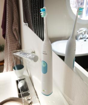 Enjoy a long battery life of up to 2 weeks with Philips Sonicare 2 Series toothbrush. The two-color battery charge indicator lets you know when it’s time to recharge the battery、 and the included charger is small to save space on your bathroom countertop. The EasyStart feature slowly increases the power of the brush over your first 14 uses as you ease into the Sonicare brushing experience、 and the Smartimer encourages a full 2 minutes brushing time as recommended by dental professionals.