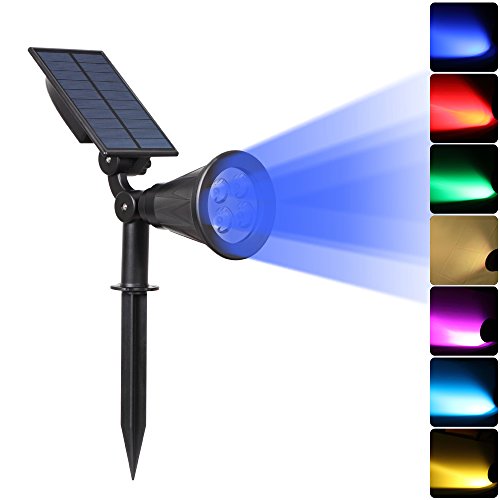 ILIKE Solar Lights Outdoor Bright Adjustable 4 LED Landscape Lights Waterproof 2-in-1 Wall Lights in-Ground Light Security Lighting Dark Sensing Auto On/Off solar uplight Pack of 2 (Blue-1 Pack)