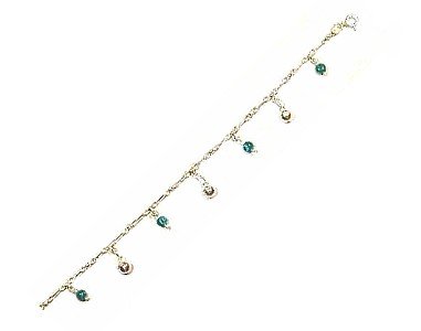 -. Title : Green Malachite (Imitation) & Ladies Sterling Silver Balls Womens Anklet, Adjustable 10" - 11"
