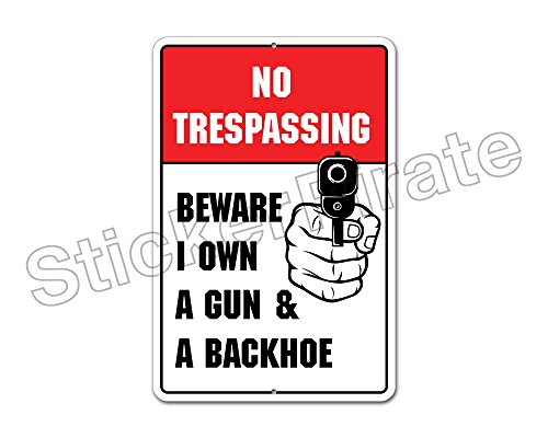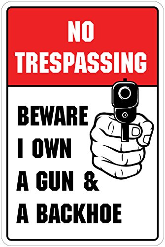 No Trespassing Beware I Own A Gun & Backhoe 8" x 12" Funny Metal Novelty Sign Aluminum NS 4108