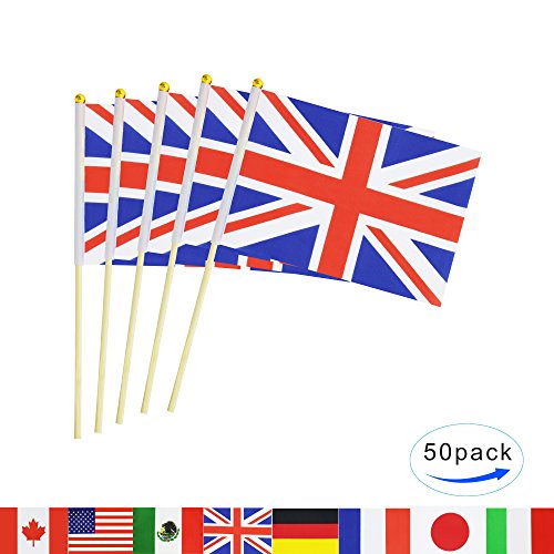 British Union Jack Stick Flag,50 Pack Hand Held Small United Kingdom UK Flag Mini British Great Britain Flag With Wood Pole,International Countries World Flags Banner On Sticks For Party Decorations