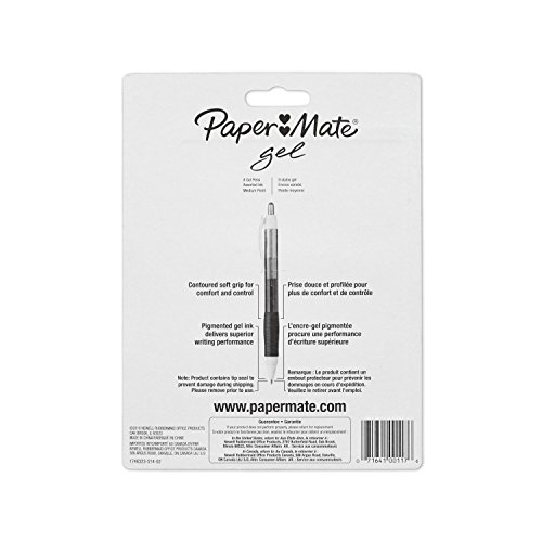 -. Title : Paper Mate Medium Point Retractable Gel Pens, 8 Colored Ink Pens (1746323)
