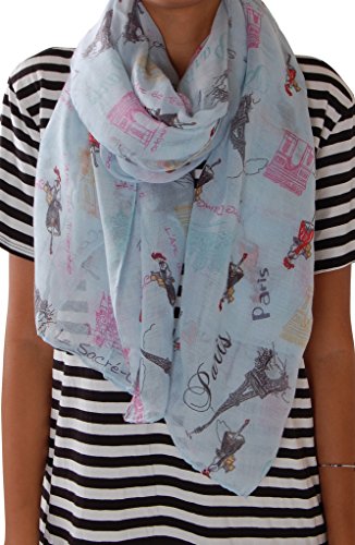 -. Title : Humble Chic Women's Paris Printed Scarf - Eiffel Tower Lightweight Shawl