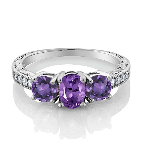 -. Title : 1.77 Ct Oval Purple Amethyst 925 Sterling Silver Women's 3-Stone Ring (Available in size 5, 6, 7, 8, 9)