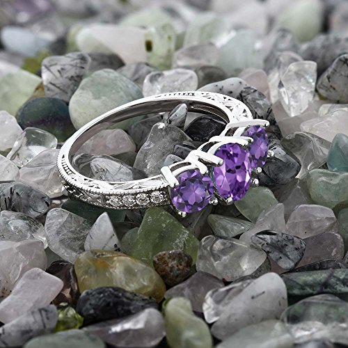 -. Feature : CARAT TOTAL WEIGHT - 1.77 CT (This item is proudly custom made in the USA). Center Stone: 7x5 mm, Small Stones: 5 mm and 1.5 mm, Natural Purple Amethyst Ring (All the sizes displayed are in stock) Crafted in 925 Sterling Silver. This ring is perfect for professing your affections for that special someone or as a just "Thinking of you" gift. It can be worn with any outfit and is a truly gorgeous addition to any jewelry collection. Gift this beautiful piece to yourself or to someone you love. / MADE OF REAL SOLID 925 STERLING SILVER - This Ring is made of solid 925 sterling silver, with 925 Stamp. This composition makes this ring extremely tough making it suitable for everyday use. Every piece passes rigorous inspection. So you can buy with confidence. / MESMERIZING DESIGN - This design is simple, classic, elegant, fit for any occasion such as daily wearing home and office. It's carefully packed in beautiful jewelry box making it perfect for gift giving on valentines day, Christmas, Birthdays, Anniversaries or simply because you're thinking of someone special. / TOTAL SATISFACTION GUARANTEE - When you order today, you're protected. The item comes with a No questions asked money back guarantee combined with world class customer service. Free Return and Refund and One Month Warranty and Free Second Day Delivery for Amazon P.R.Ime! / Gemstones may have been treated to improve their appearance or durability and may require special care.