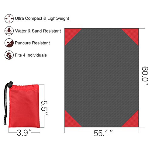Lightweight & Easy to Use, It only weighs 5.5 oz. so it is the ideal travel mat for when you are on the go. The blanket has corner pockets you can fill with sand to keep it windproof, or you may use the pockets to put your belongings in, if you want to protect them from the sunshine.