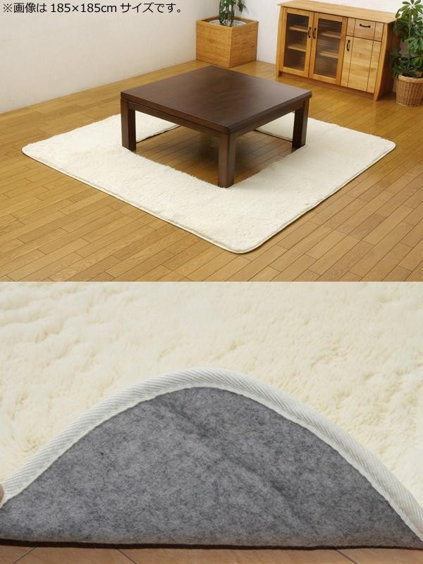 | 掘りごたつ対応のカーペットです。くり抜き部分もお届けします。表地にフィラメント糸(極めて長い繊維)を使用しています。パイルの長さは約18mmと適度な長さで、さらさらふわふわとしたやさしいタッチ感を出しました。フローリングを傷つけにくいよう、裏には不織布を貼っています。 |