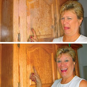 ORANGE WOOD CLEANER and Recondtioner- easy 2 step wood care. Clean years of unwanted grease, grime, old aerosols, and lemon oils on kitchen cabinets, furniture and antiques.