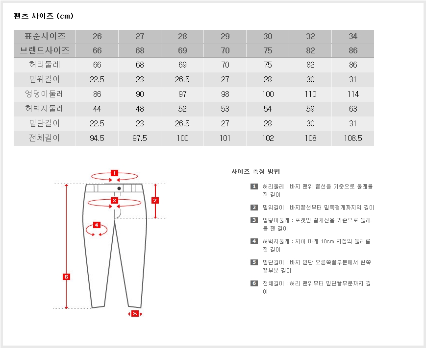 - 사이즈 26(66)/27(68)/28(69)/29(70)/30(75)/32(82)/34(86)