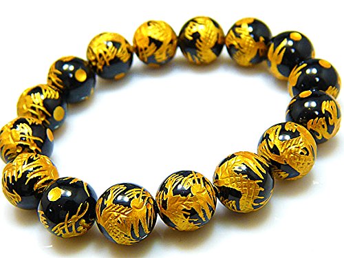 원본상품명: 【京珠堂】金彫り皇帝龍オニキス AAA 12mm 天然石 ブレスレット