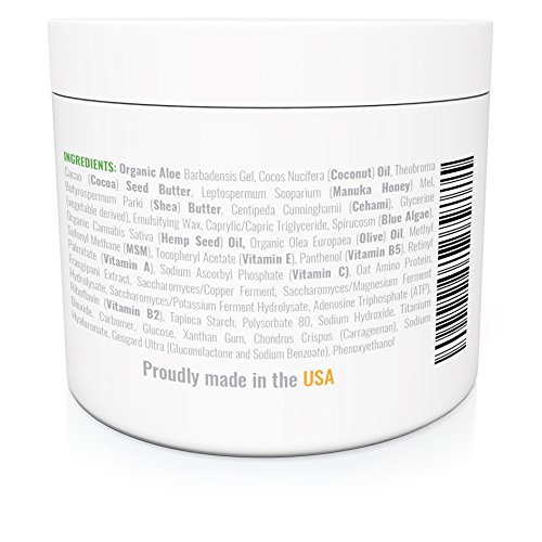 Powerful 15-in-1 formula 1. aloe vera - carries the cream down to the cellular level to sooth itchy, red skin fast 2. coconut oil - reduce redness and swelling 3. cocoa butter - prevents dryness and flaking 4. manuka honey - medical grade honey from New Zealand - anti-bacterial, healing and moisturizing 5. shea butter - powerful moisturizer; stimulates repair 6. cehami - an Australian flower extract - reduces redness, pain, inflammation, and itchiness 7. blue green algae - vital trace minerals - food for your skins cells 8. hemp seed oil - increases blood flow; speeds up the healing process 9. olive oil - softens the skin; promotes skill cell regeneration 10. MSM - moisturizer, anti-inflammatory and reduces pain 11. vitamin E - repairs damaged skin 12. vitamin B5 - helps healthy nerve function 13. vitamin A - fights inflammation; supports cell growth 14. vitamin C - promotes healthy skin 15. vitamin B2 - speeds healing; protects skinLove It or Your Money Back! If you don't feel our cream is right for you, for any reason, we offer a full, money-back guarantee on your purchase today. Click Add to Cart now and get the results you've wanted, naturally! 0 |
