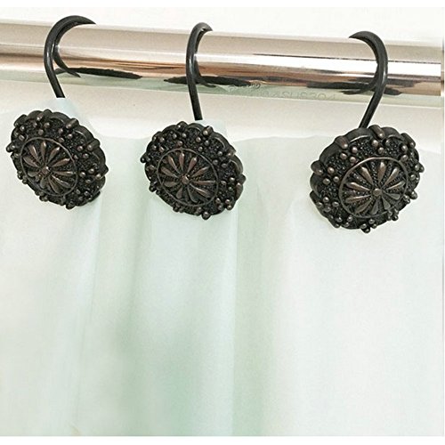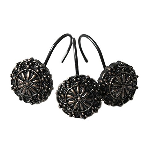 Ayygiftideas Set of 12 Classic Fashion Black Round Shape Shower Curtain Hooks