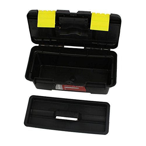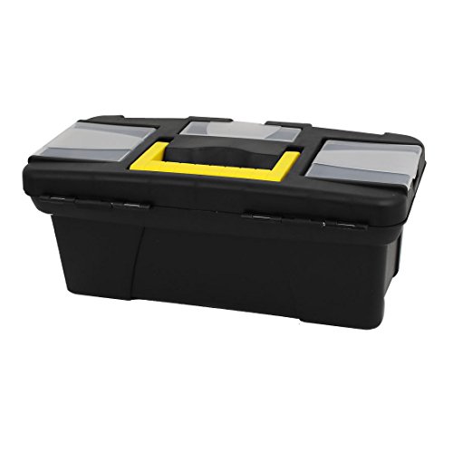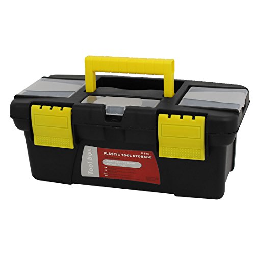 uxcell Hardware 2 Layers Multipurpose Tool Box Black Yellow 250mmx120mmx100mm