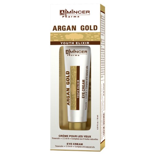 Argan Gold - Youth Elixir eye cream provides the skin with comfort, moisturises and brightens the skin. This delicate formula uses the extraordinary properties of argan oil and a complex of oils (Avocado oil, Jojoba oil, Abyssinian oil, Grape seed oil). Enriched in troxerutin (bioflavonoid) counteracting the signs of aging, the formula moisturises, revitalises and perceptibly improves the skin tone. The cream is rapidly absorbed and optically reduces the visibility of wrinkles.