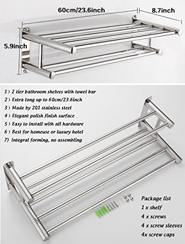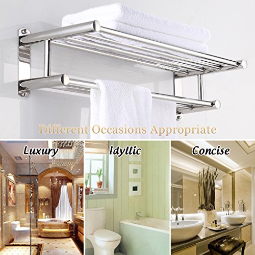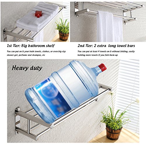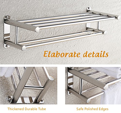 Bathroom Shelves Wall Mounted Towel Rack Stainless Steel Towel Bar, Polish Finish, 24 inch