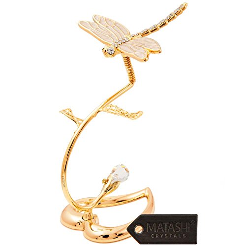 - EYE-CATCHING DESIGN: Like an iridescent jewel, the agile dragonfly zips through the air and alights on a bowing stem overhanging the pond. Its diaphanous wings and shimmering body sparkle resplendently in the dazzling summer sun. Crafted with quality materials like 24K Gold and studded with precision cut Matashi® crystals.
