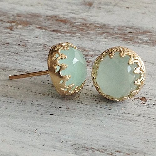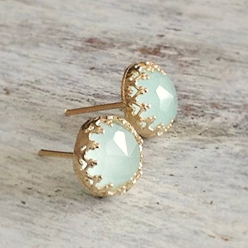 -. Brand : Avnis -. Color : Light Green, Gold -. Department : Women -. Feature : All products are designed and carefully handcrafted by me using highest quality materials. -. IsAdultProduct : 0 -. ProductGroup : Guild Product -. ProductTypeName : GUILD_JEWELRY -. Title : Gold Jade Earrings Light Green Stud Set of 2 14k Gold Filled Crown Jewelry
