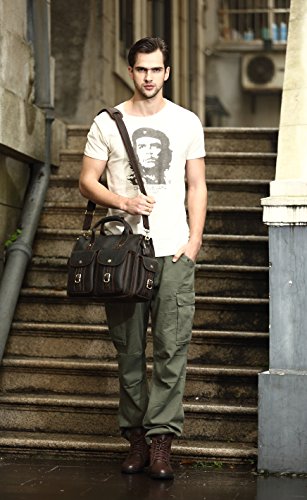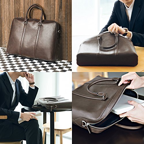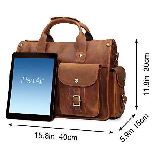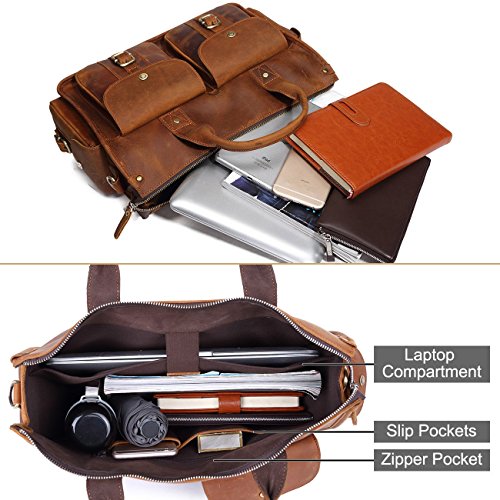 EverVanz Tote Handmade Vintage Leather Briefcase without Flap for 15 Inch Laptop Shoulder Bag H...