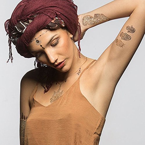 - WHAT'S INCLUDED: Metallic Tattoo Sheets. Application instructions included. Perfect for Halloween, cosplays, photoshoots, club nights, birthdays, arts & crafts projects, festivals, charity events, and sports games. Tattoo body art is suitable for men, women, boys and girls. Apply faux tats on your own ankle, arm, belly button, face, foot, forearm, lower back, hip, neck, chest shoulder, waist, upper back, wrist or anywhere in between!