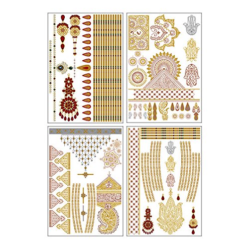 Tattify Metallic Gold Indian Style Jewelry Temporary Tattoos Indian Princess (Set Of 4 Sheets) - Other Styles Available and Fashionable Temporary Tattoos