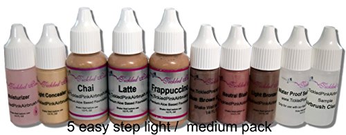 Studio : Tickled Pink Publisher : Tickled Pink Binding : Misc. Product Description Tickled Pink Airbrush's unique Cosmetic Airbrush Makeup foundation will change your makeup application forever! Instantly conceal and diminish unwanted imperfections like wrinkles, fine lines, acne, redness, discolorations, freckles, tattoos, rosacea, age spots, scars, birthmarks, dark circles under the eyes and so much more...Instantly conceal and diminish unwanted imperfections like wrinkles, fine lines, acne, redness, discolorations, freckles, tattoos, rosacea, age spots, scars, birthmarks, dark circles under the eyes and so much more...Cosmetic Airbrush Makeup is Easy to apply, light weight, daily wear makeup that lasts all day without touch-ups. Add a light coat of our Water Proof Sealant to provide even more staying power.Mastering airbrush techniques is simple and quick. Takes only minutes to learn how to apply the makeup correctly. Mix different colors right in the cup of the airbrush gun for the perfect shade. No more wasting any makeup. Cosmetic Airbrush Makeup is perfect for all ages, and can help you look years younger with flawless skin. Revolutionary Aloe-based Cosmetic Airbrush Foundation allows your naturally beautiful skin to show through - without the imperfections!Tickled Pink Airbrush Cosmetic Line of Aloe-Based Cosmetic Airbrush Foundations are 89% organic, Paraben Free, infused with beneficial anti-aging antioxidants moisturizers that promote a healthy youthful high definition look.Safe for Sensitive Skin and all Skin Types; Dermatologist Recommended and is Hypoallergenic Tickled Pink Airbrush Cosmetic Airbrush Makeup is 89% Organic, Made in Oregon with the best all Natural Ingredients and is Gluten Free Hygienic Application Cosmetic Airbrush Makeup never touches the hands, brushes or sponges, so makeup contamination is eliminated. Perfect for sharing with family or friends. Dermatologist Recommended, also excellent for those fighting acne since there are no sponges or brushes for bacteria to grow, helping to clear the skin. 0