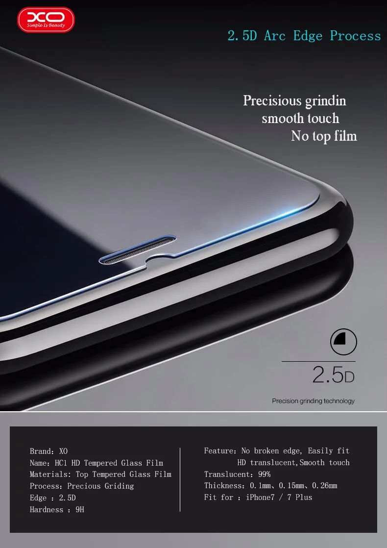 XO Brand Tempered Protective Glass Film On Screen Protector for iPhone 7 7 plus 4.7" 5.5" 0.26/0.15mm 9H Hardness Nano-coatingu0026nbsp;