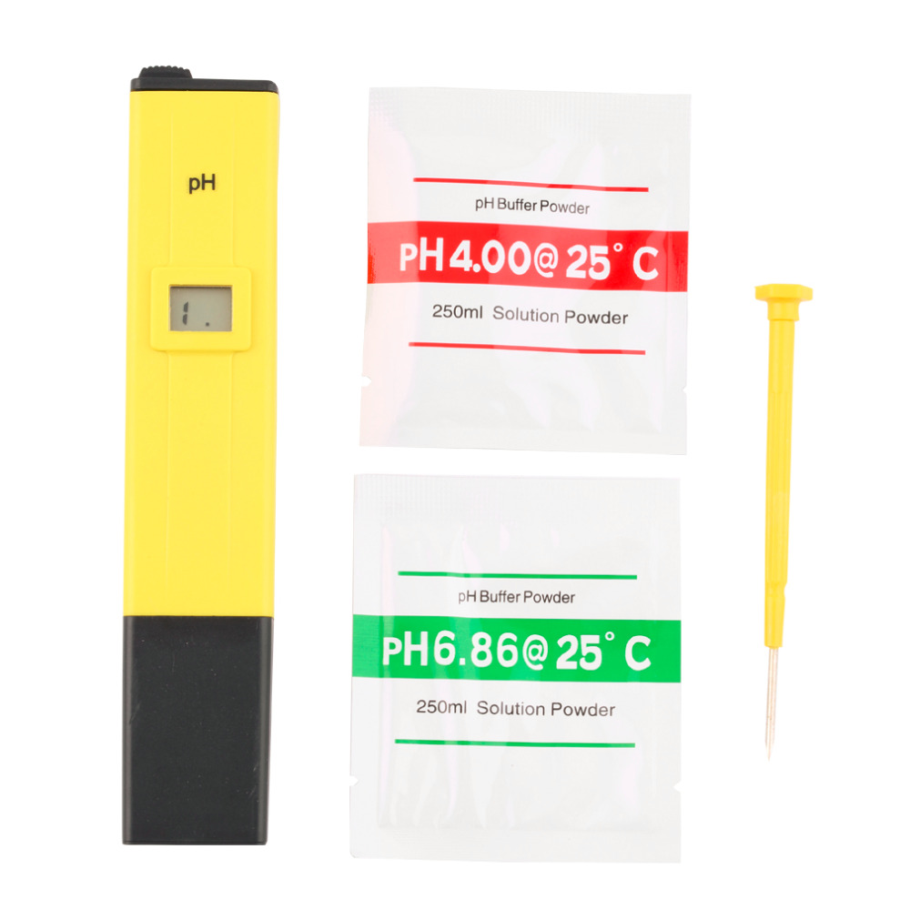| Features: This digital pen style pH meter is an ideal instrument for aquarium fishing industry swimming pool school laboratory food !#!amp!*! beverage etc. 100% brand new meter with calibration screwdriver and 2 sachets of buffering solution for calibration. Excellent meter very accurate and durable Ideal instrument for aquarium fishing industry swimming pool etc Specifications: Measuring pH Range: 0.0 - 14.0 pH Resolution: 0.1 pH Accuracy: 0.1 pH (at 20C/68F) 0.2 pH Operating Temperature: 0 - 50C (32 - 122F) Calibration: Manual 1 point Relative Humidity: !#!lt!*!95% Life: Approx.700 hours of use Size: approx 150mm x 29mm x 20mm Color: Yellow !#!amp!*! red(as pictures shown) Trimming: By potentiometer Battery: 3*1.5v (AG-13 button battery) (included) Color: yellow Net Weight: 113g Package contents: 1 x Digital PH Meter Tester Pen( Batteries are included) 1 x Calibration Adjustment Screwdriver 2 x Pouches of calibration buffer solution(pH 4.0 !#!amp!*!pH 6.86) 1 x User Instruction Manual (English) 1x plastic case |