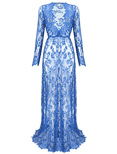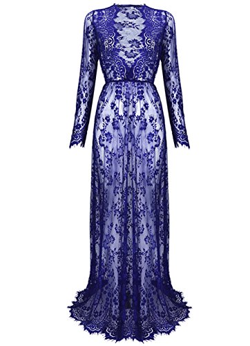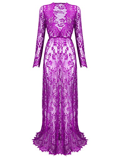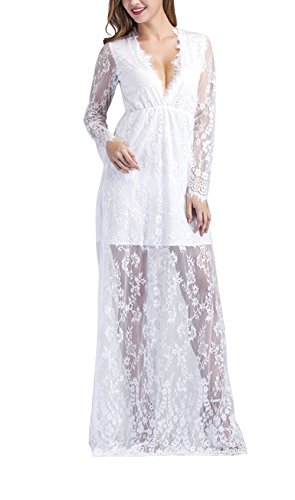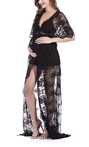 This gorgeous lace gown is Beautiful in pohots, you can wear it as a maternity dress for pictures of your pretty belly for the new baby; you can wear this over a slip as it is see through and will show your underwear and lady parts; you can also wear it as a Zombie Bride cosplay at Halloween!